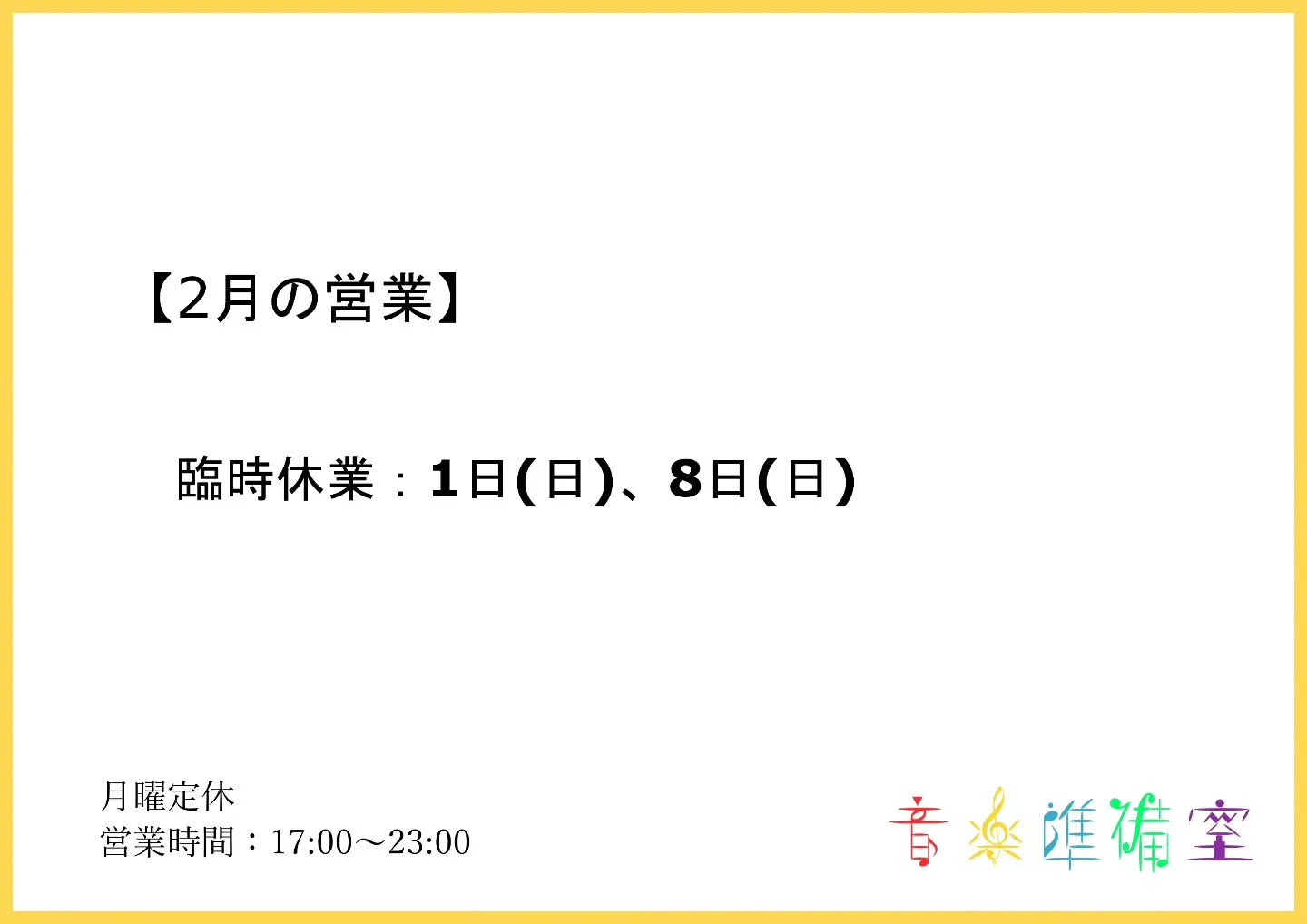 【2月の営業】 臨時休業:1日(日)、8日(日)
